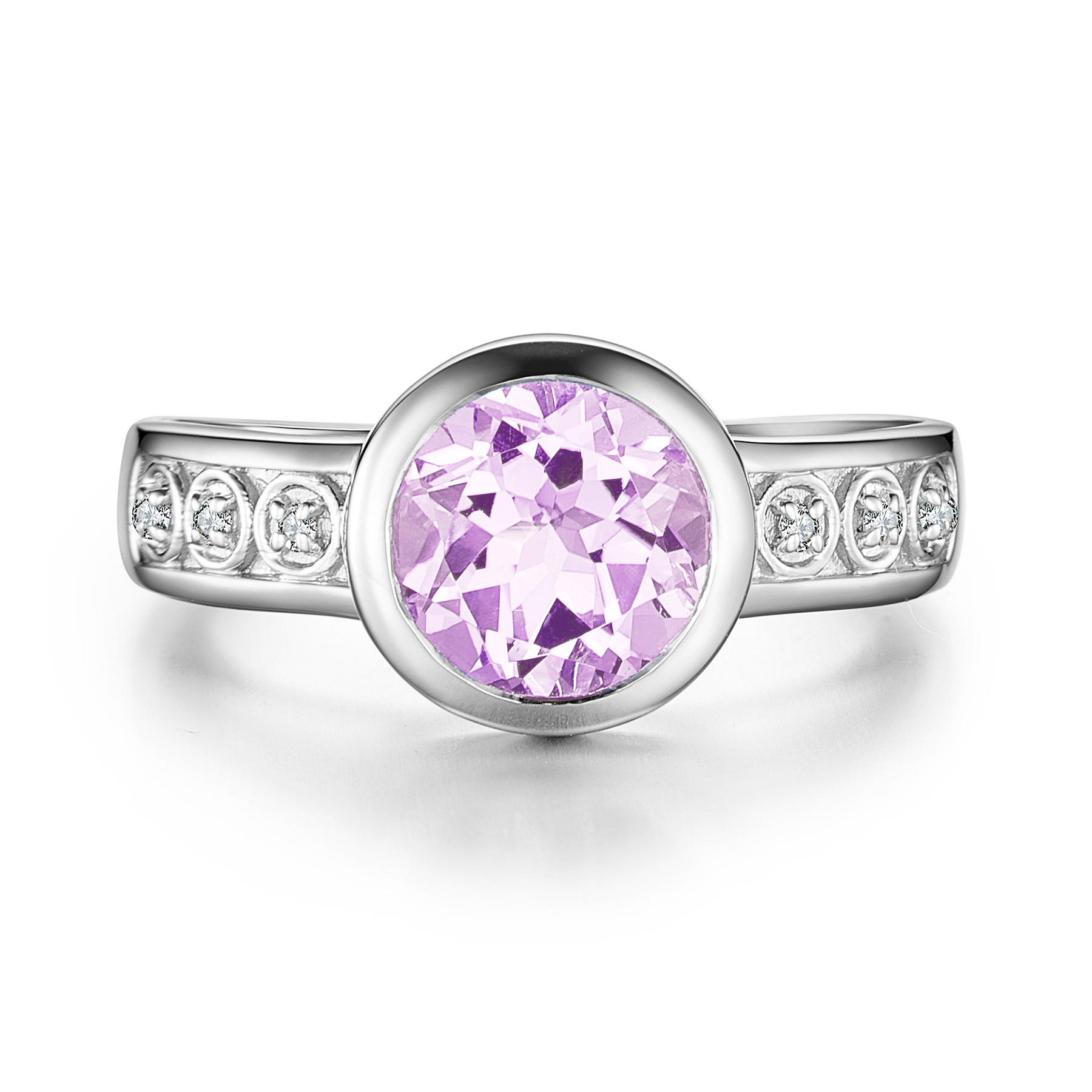 S/S PINK AMETHYST & DIA. RING 0.04CT