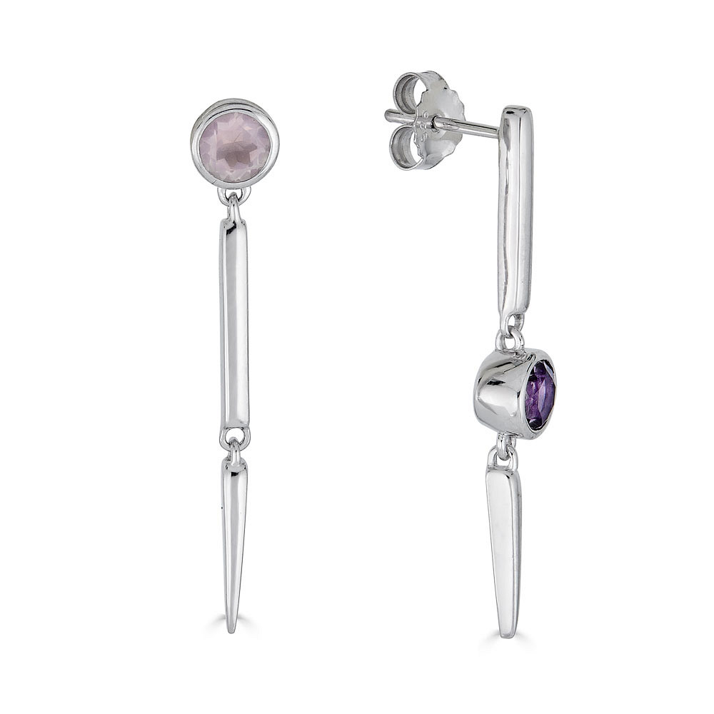 S/S AMETHYST AND ROSE QUARTZ EARRINGS